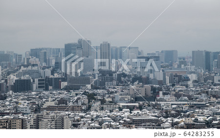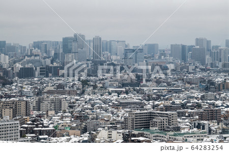 日本の東京都市景観 新型肺炎 凍てつく都心(品川など)=29日(感染爆発、…32年ぶりの積雪)
