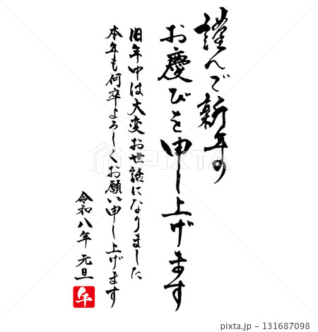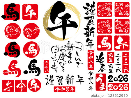 2026年令和八年午年の年賀状筆文字セット1