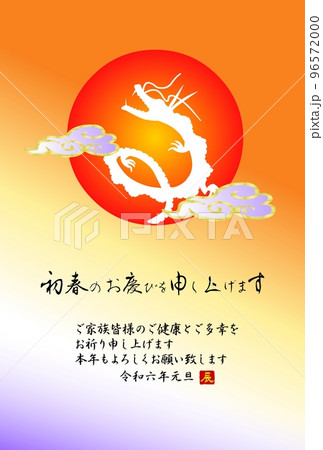 辰年年賀状 太陽を背景に昇り龍と中国雲