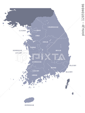 グレー色の韓国の行政区分地図 (Map of South Korea)