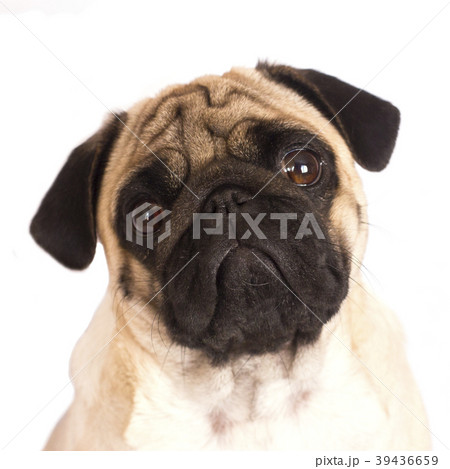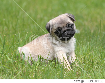 Typical Pug dog in the garden