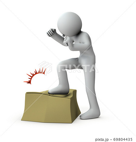 怒りを和らげるために段ボール箱を踏みにじる人物。3Dレンダリン
