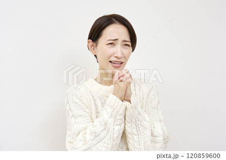女性 ミドルエイジ 懇願する 白背景 カメラ目線