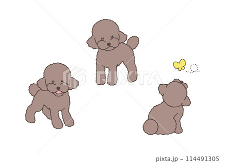 トイプードルのシンプルなイラストセット(リアルタッチ)