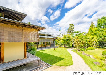 二の丸茶室桔梗庵 木造平屋一文字葺の伝統的な「数寄屋造り」景観と調和した趣のある茶室