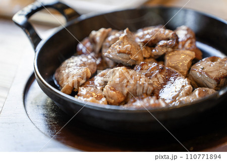 鉄板とサイコロステーキ