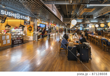 [東京・成田] 成田国際空港第三ターミナル内のフードコートで並んでる日本料理のレストラン。