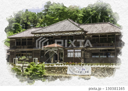 水彩画風 旧吹屋小学校 岡山県高梁市