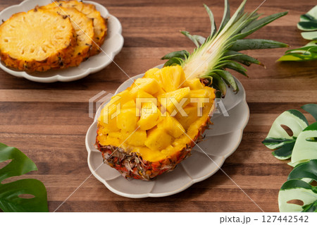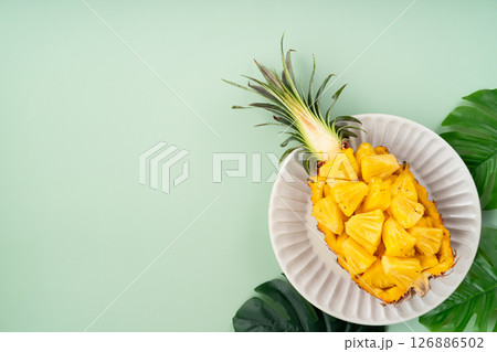 鳳梨 熱帶 葉子 盅 切塊 切片 pineapple chucks bowl パイナップル