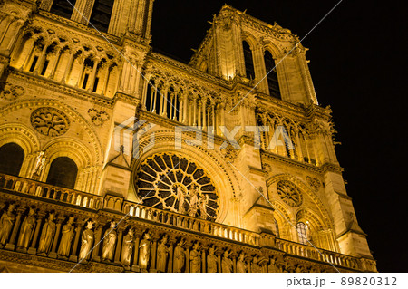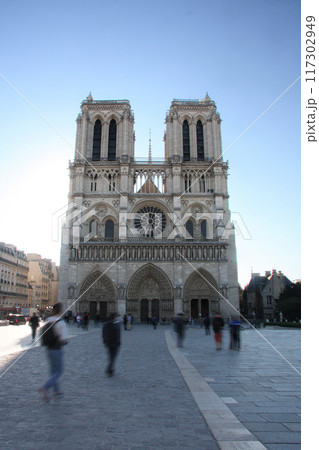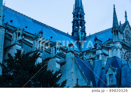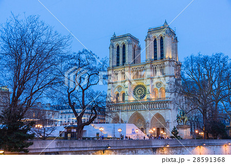 フランス パリの夕暮れ時のノートルダム大聖堂