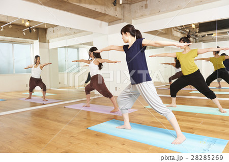 ヨガをする若い女性 日本人 英雄のポーズ ホットヨガ