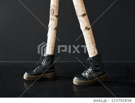 Strong legs. MMA fighter, teen girl training, kicking with leg against orange studio background in neon lights