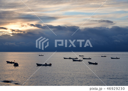 冬の北海道函館市戸井でウニ漁をする船の早朝の風景を撮影