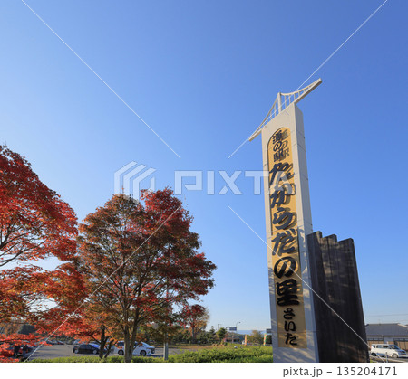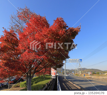道の駅 たからだの里さいた、青空と紅葉(国道32号)