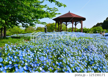 名古屋市港区の戸田川緑地公園内の花壇と東屋