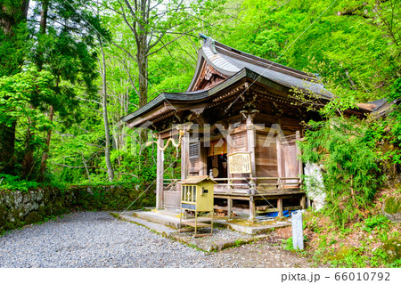 長野県 戸隠神社境内の九頭龍社と深緑