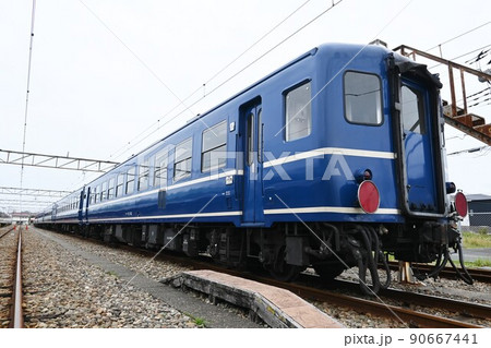 車両基地に停車する12系客車(うち房の横サボ付き)