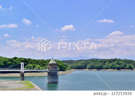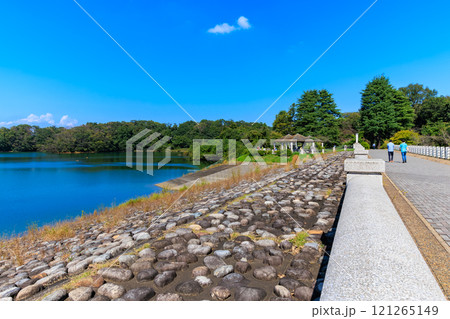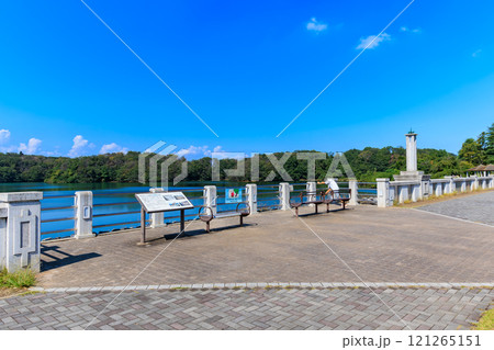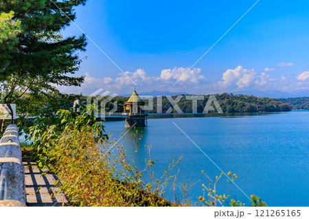 第一取水塔と余水吐け水門がある風景【多摩湖・村山貯水池】/東京都東大和市