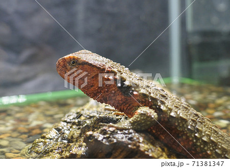 シナワニトカゲ 岩の上に上がってじっとしている。 日光浴