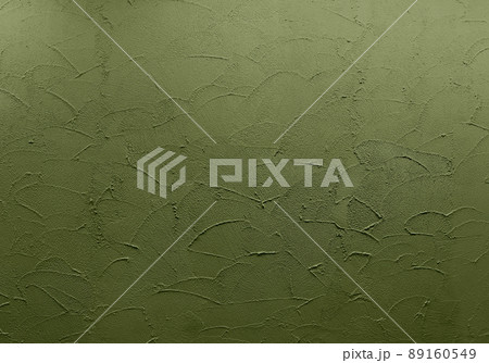 コテ跡の残る暗い黄緑色の土壁のカラーウォールの縦長の背景画像