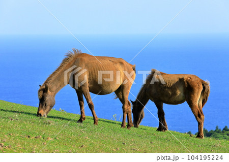 【宮崎県】快晴下の都井岬(御崎馬の放牧)