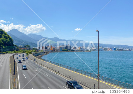鶴見岳から見た別府市街と日出町、杵築市などの国東半島
