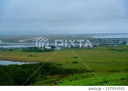浜頓別クローバーの丘からクッチャロ湖を望む、6月の快晴の風景