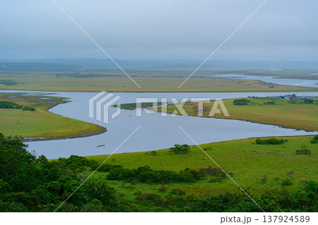 霧に包まれた霧多布湿原 北海道浜中町の雄大な湿原風景