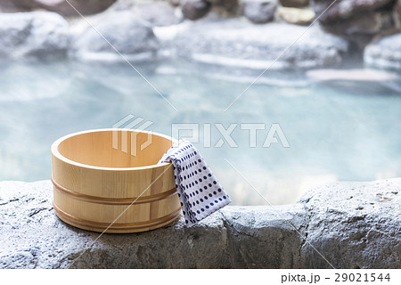 露天風呂 温泉イメージ 檜風呂 温泉情緒 源泉掛け流し イメージ素材