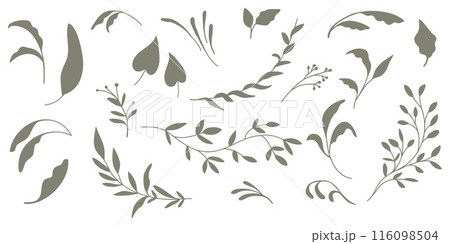 Set of silhouettes of branches and leaves. Hand drawn vector botanical elements.