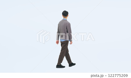 歩くカジュアルウェアのミドル男性の後ろ姿 手作業で精密に切り抜いた背景透過全身写真PNG