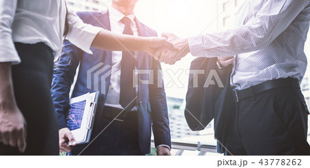 Businessmen greeting handshake deal with together