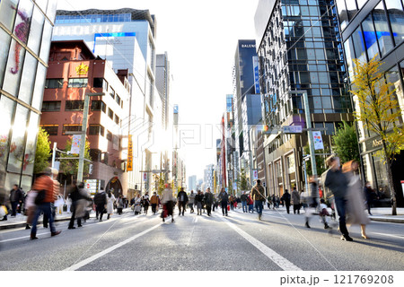 歩行者天国の銀座通りを歩く人々