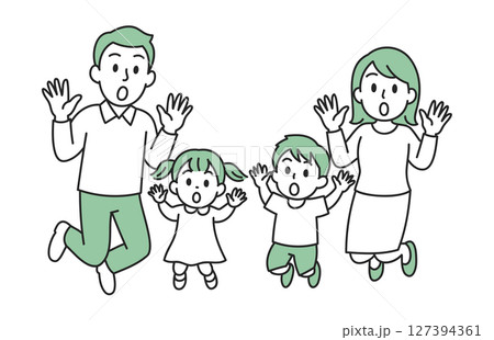 手をあげてはしゃぐ子供の後ろ姿、線画