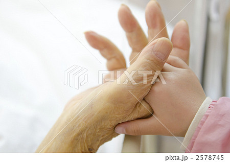 老人と子供の手