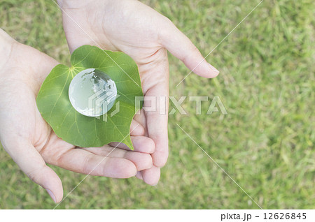 エコイメージ 地球儀と葉っぱと手