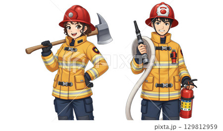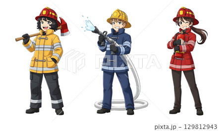 Set of Firefighter character cartoon design.