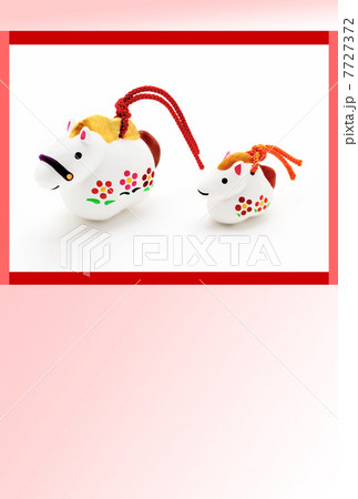 二匹の仲良しウサギのぬいぐるみの年賀状