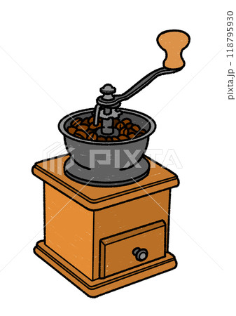嗜好品の珈琲豆を挽いて粉にするコーヒーミルのイラスト