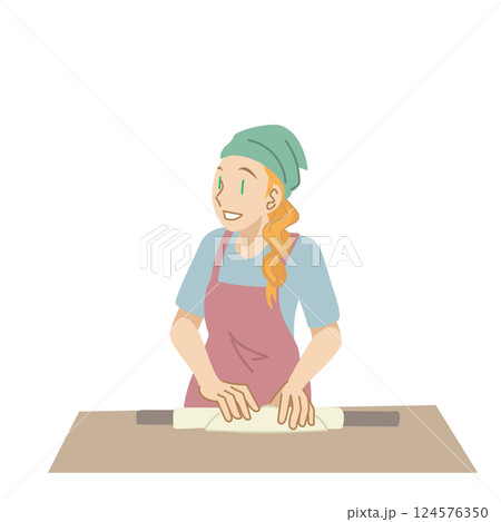 蕎麦打ち体験をする白人女性