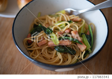 小松菜とベーコンの和風スパゲティ