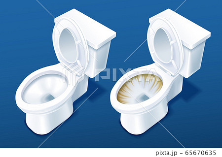 Ceramic indoor and outdoor toilet bowl. Realistic isolated on transparent background elements. Lavatory bathroom ceramic bowls with open and closed lid. Cloakroom or restroom vector concept