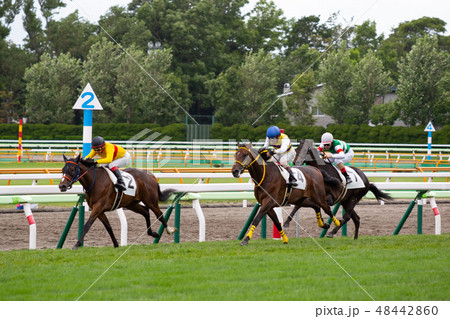 競馬場の風景 直線を走る馬 新潟県新潟市