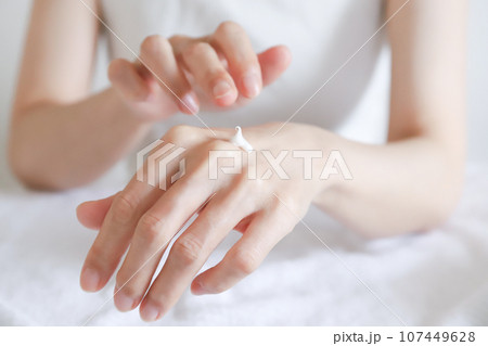ハンドクリームを塗る手元 ハンドケア