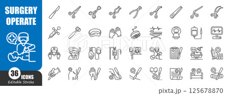 Surgery and surgical operation . Medical outline icon . Editable stroke . Vector .