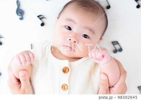 音符と赤ちゃん 手遊び 歌いかけ イメージ