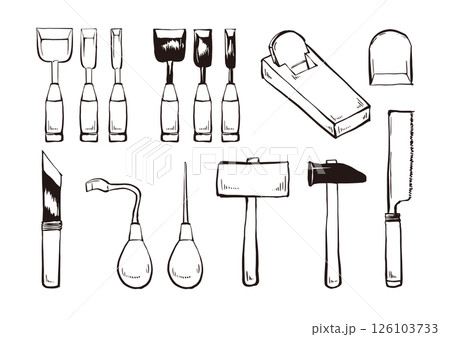 ノミ 刃物 木工道具 筆 線画 挿絵 イラスト