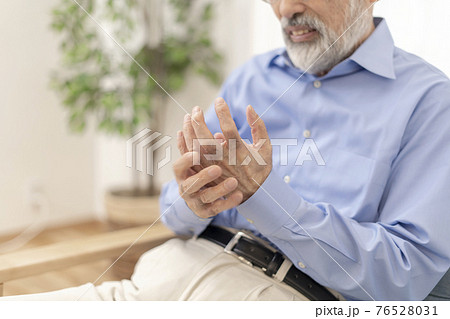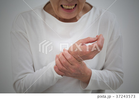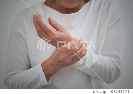 高齢者の手(老人の手)手のしびれ震え・手首の痛み・関節痛イメージ写真素材