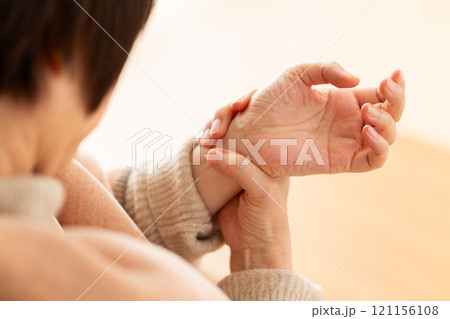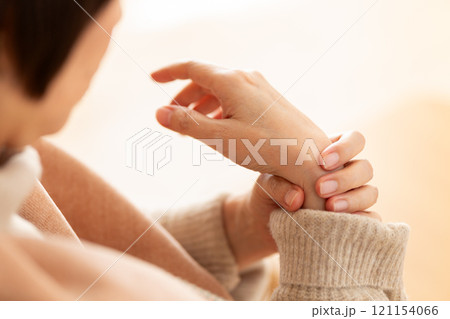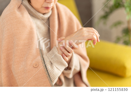 高齢者の手(老人の手)手のしびれ震え・手首の痛み・関節痛イメージ写真素材