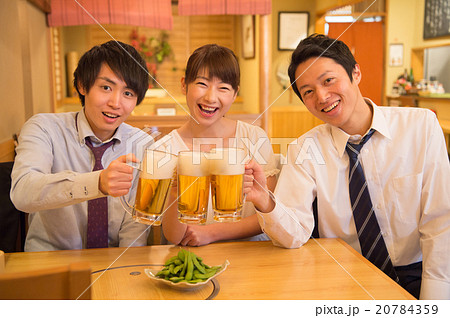 ビールジョッキを持った若い男女 飲み会・乾杯 イメージ